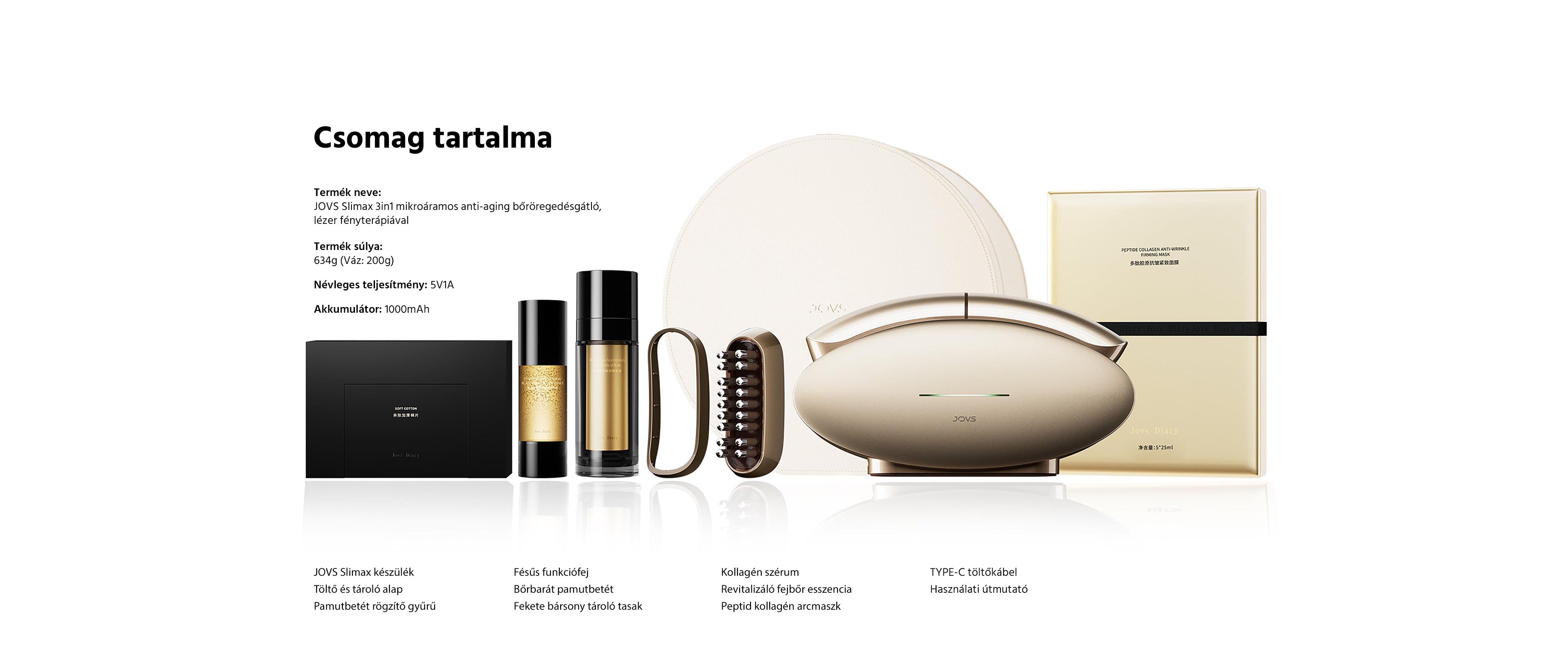 A JOVS Slimax egy prémium kategóriás, otthoni mikroáramos anti-aging készülék, amely három korszerű technológiát ötvöz: